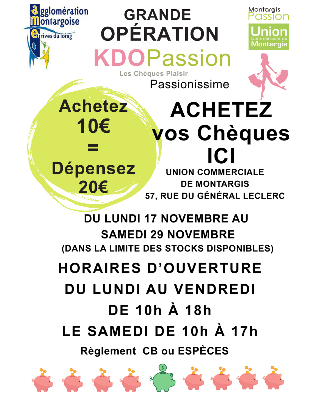 Grâce à un budget de 100 000 € offert par l’Agglomération Montargoise, ce sont 10 000 chèques KDO Passion qui sont mis en vente à l’Union Commerciale de Montargis.